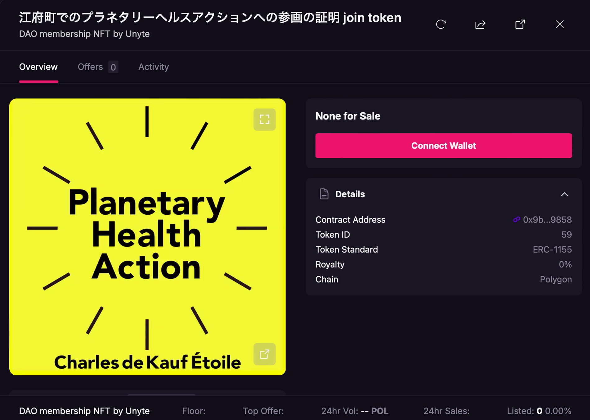 江府町に足を運び、田植えに参加したメンバーには、メンバーシップNFTを発行し、DAOメンバーとして認証の上、田植え作業に貢献したことに対してリワードトークンnichtone(ニッヒテーネ)(単位:NT)を発行しました。
