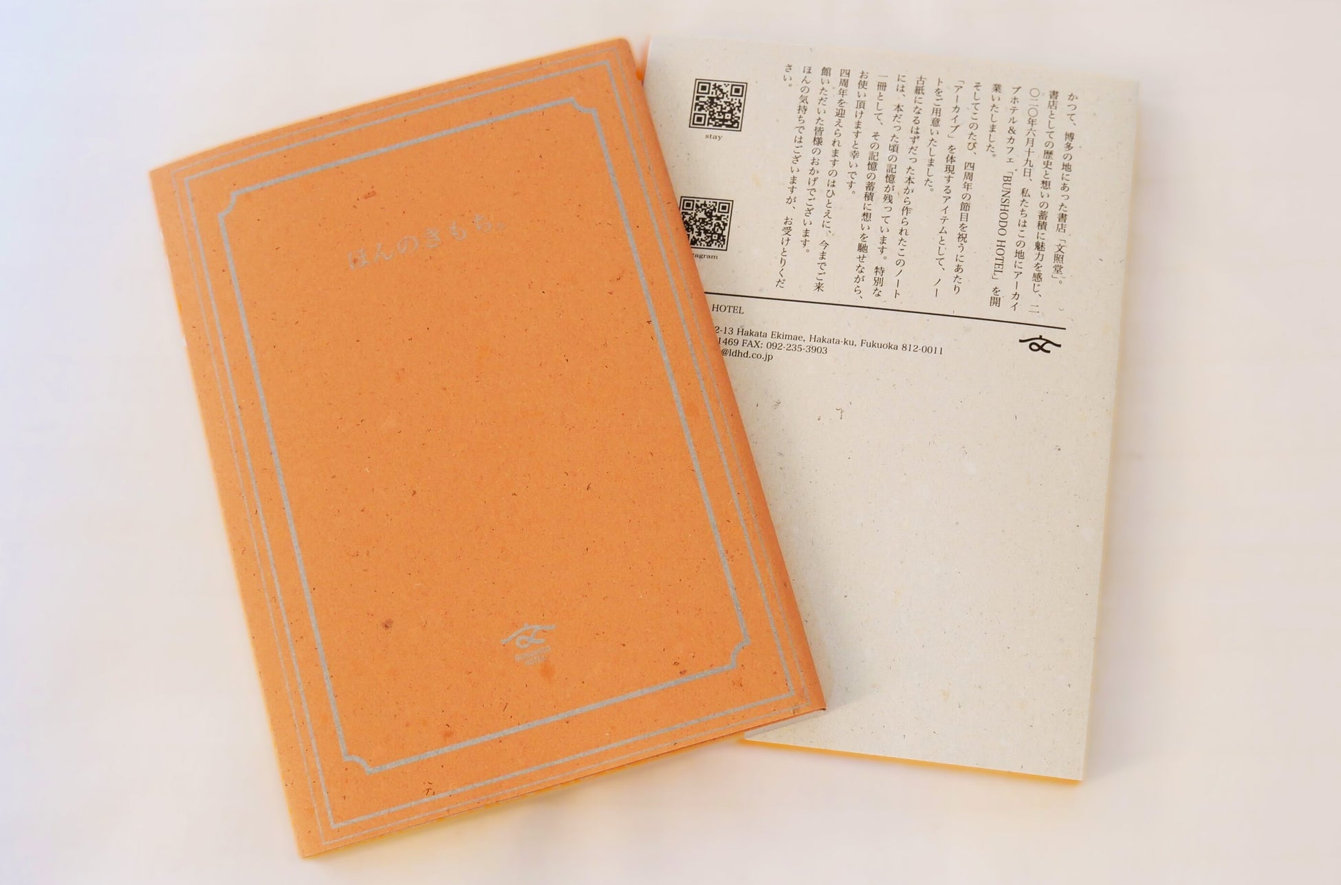 【BUNSHODO HOTEL開業4周年記念】“本で作った再生紙”で制作したオリジナルノートを配布いたします。