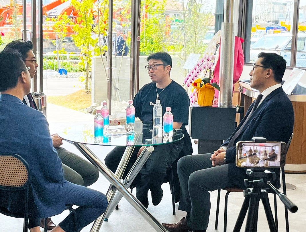 サウナに対する熱い思いを武雄市長 小松 政様、株式会社バーグマン代表取締役社長 笠間 聖司様、朝日I&Rホールディングス株式会社 代表取締役 野畑 ⿓彦4人で対談をおこないました。サウナ事情や施設の今後の普及についてなど語っていただき、とても有意義な時間となりました。対談後は、朝日I&Rホールディングス株式会社の社内にあるサウナをご覧いただきました。