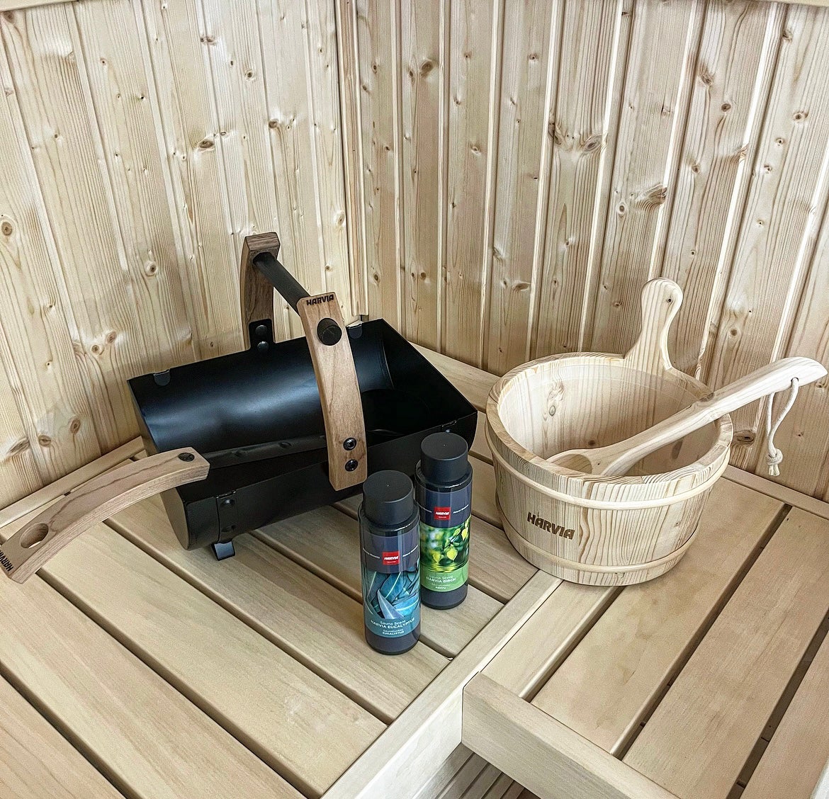 フィンランド製の本格的ハルビアサウナツールと、創業100 年のテキスタイルメーカー ヨキピンペラヴァの天然素材を使用したサウナグッズです。