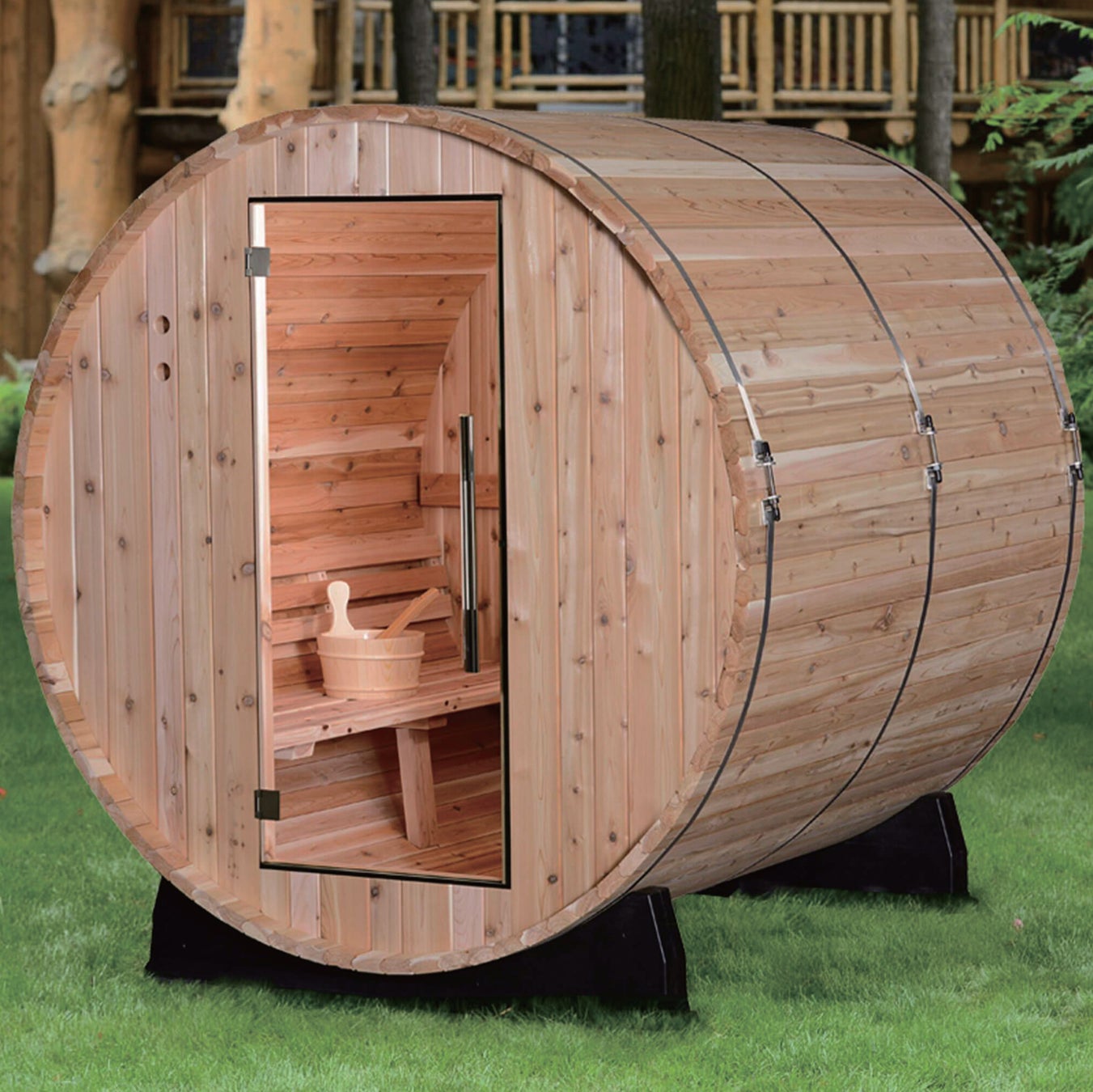 ご自宅や別荘のお庭や河原や湖畔、キャンプ場にマッチするアウトドアサウナです。