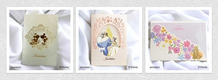 ミッキー&ミニーはもちろん、『美女と野獣』や『塔の上のラプンツェル』をモチーフにした招待状をご用意!