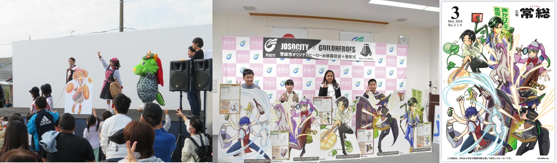 常総市においては包括連携協定のもと、2023年12月から「職業体験+ヒーロー作りワークショップ」の取り組みを、TSUTAYA、道の駅常総、常総市の連携により実施し、親子で制作したSDGsヒーローが複数誕生しました。ヒーローたちは、市内の各地でPRキャラクターとして活躍、展示され、地域の職業への理解促進とシビックプライドの醸成を通じて、常総市の定住人口の増加および地域経済の活性化など、常総市のまちづくりへの貢献をはじめています。