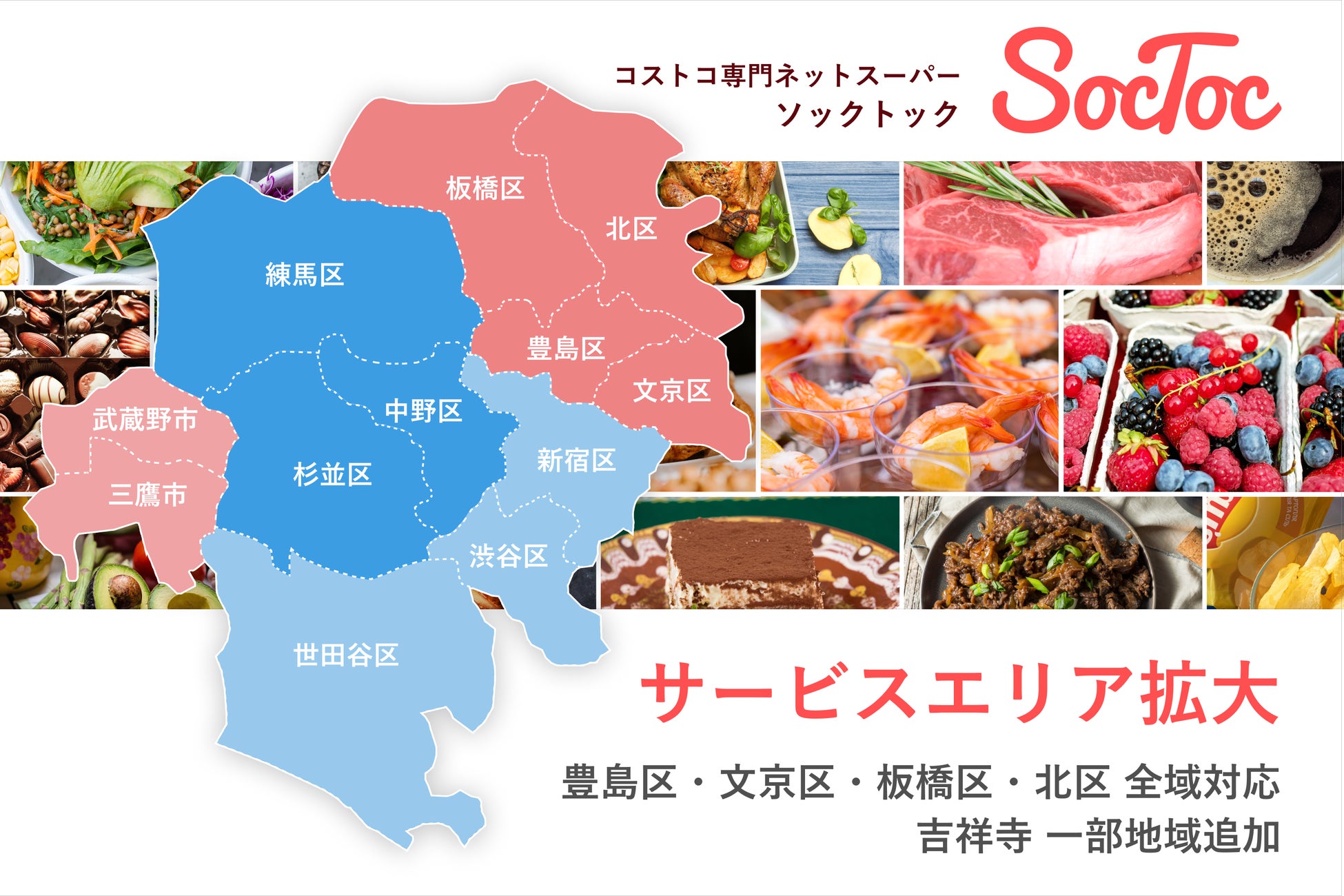コストコ専門ネットスーパーSocToc、6月のサービスエリア拡大計画を公開。新たに豊島区/文京区/板橋区/北区全域と吉祥寺エリアが対象に。