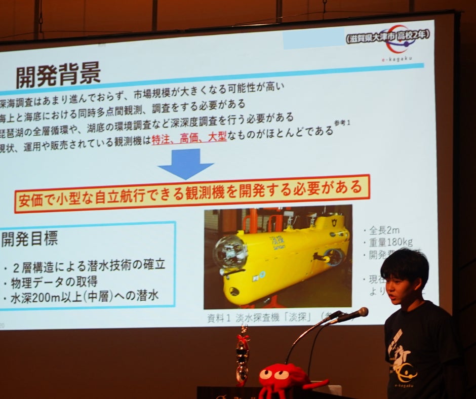 本シンポジウムでは、e-kagakuアカデミーの中・高・大学生が取り組んでいる琵琶湖の環境調査活動を紹介。水中での自動航行を可能にする水中ドローンの開発、表水面探査ロガーについて発表を行う予定です。ほかにも、「DX社会とICT教育を繋ぐモデルケースとするには」と題して、産官学金それぞれの立場から識者が集い、環境問題ならびに宇宙利活用とデータサイエンスの応用が進展するICT時代にマッチした事業創生について議論します。