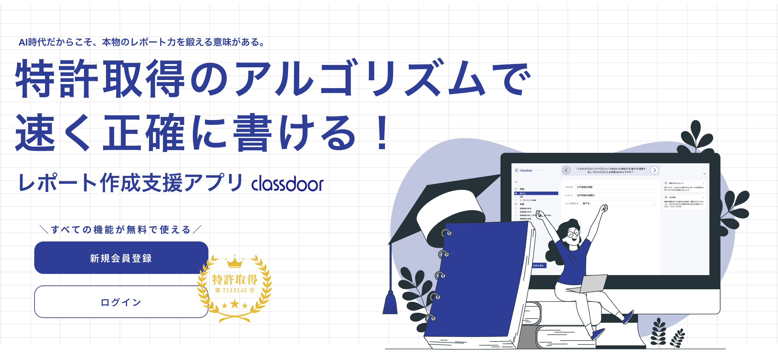 大学生の思考力を鍛えるレポートアシストアプリ「classdoor」がAIレポート評価機能α版を公開!文章構成とフィードバックのサイクルで学生の成長を加速します!