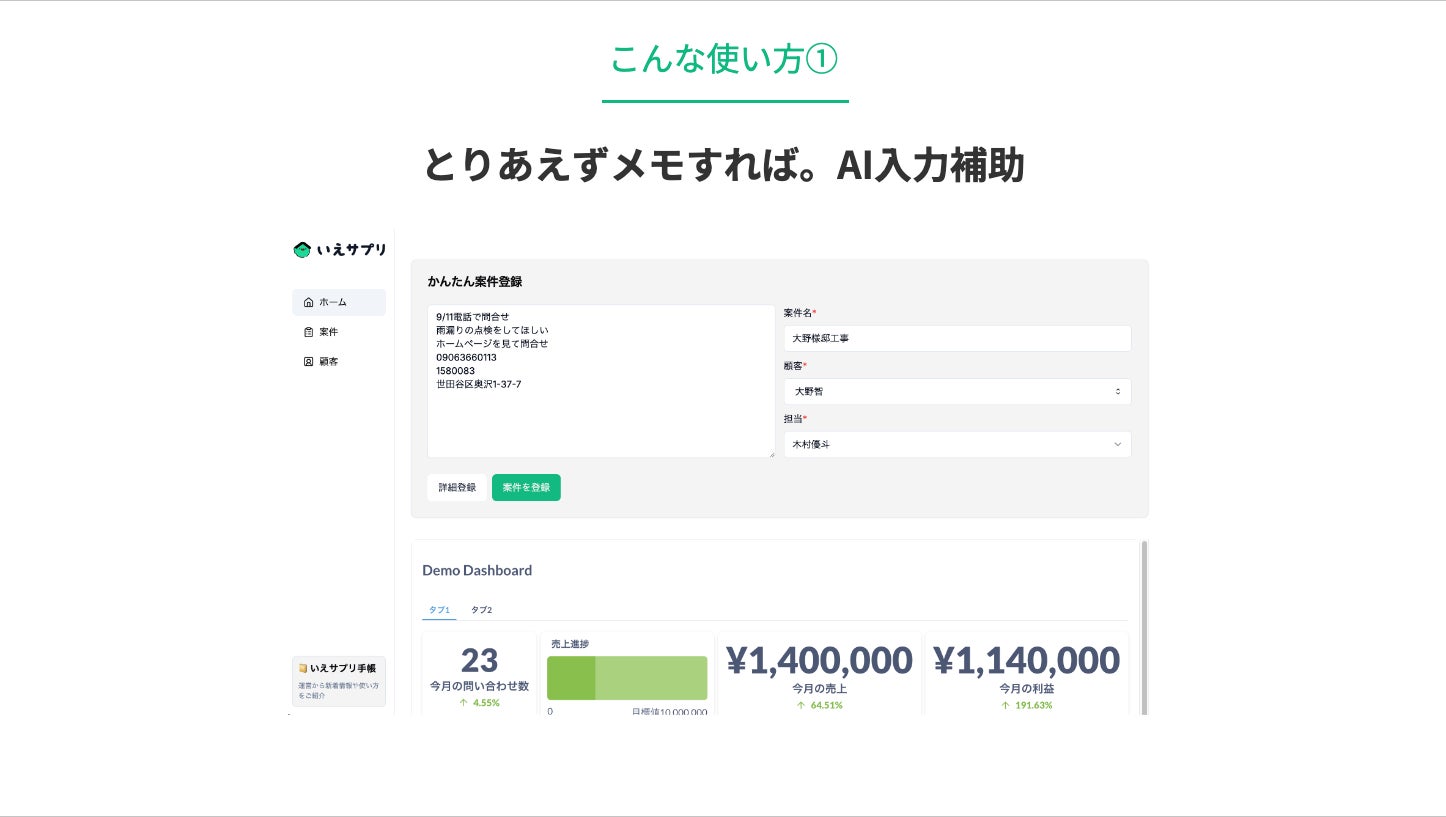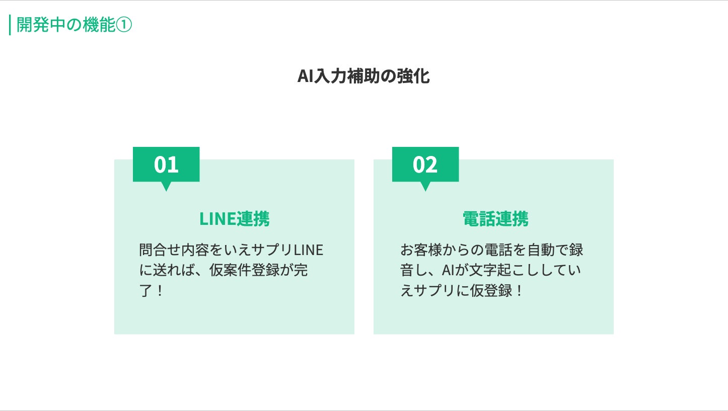 電話などで問合せを受けたら、とりあえずメモをして、細かい入力はAIに任せられるようになります。
