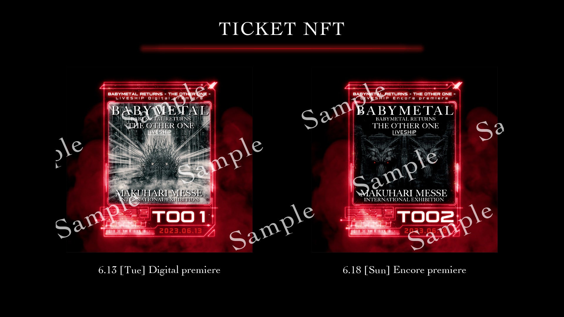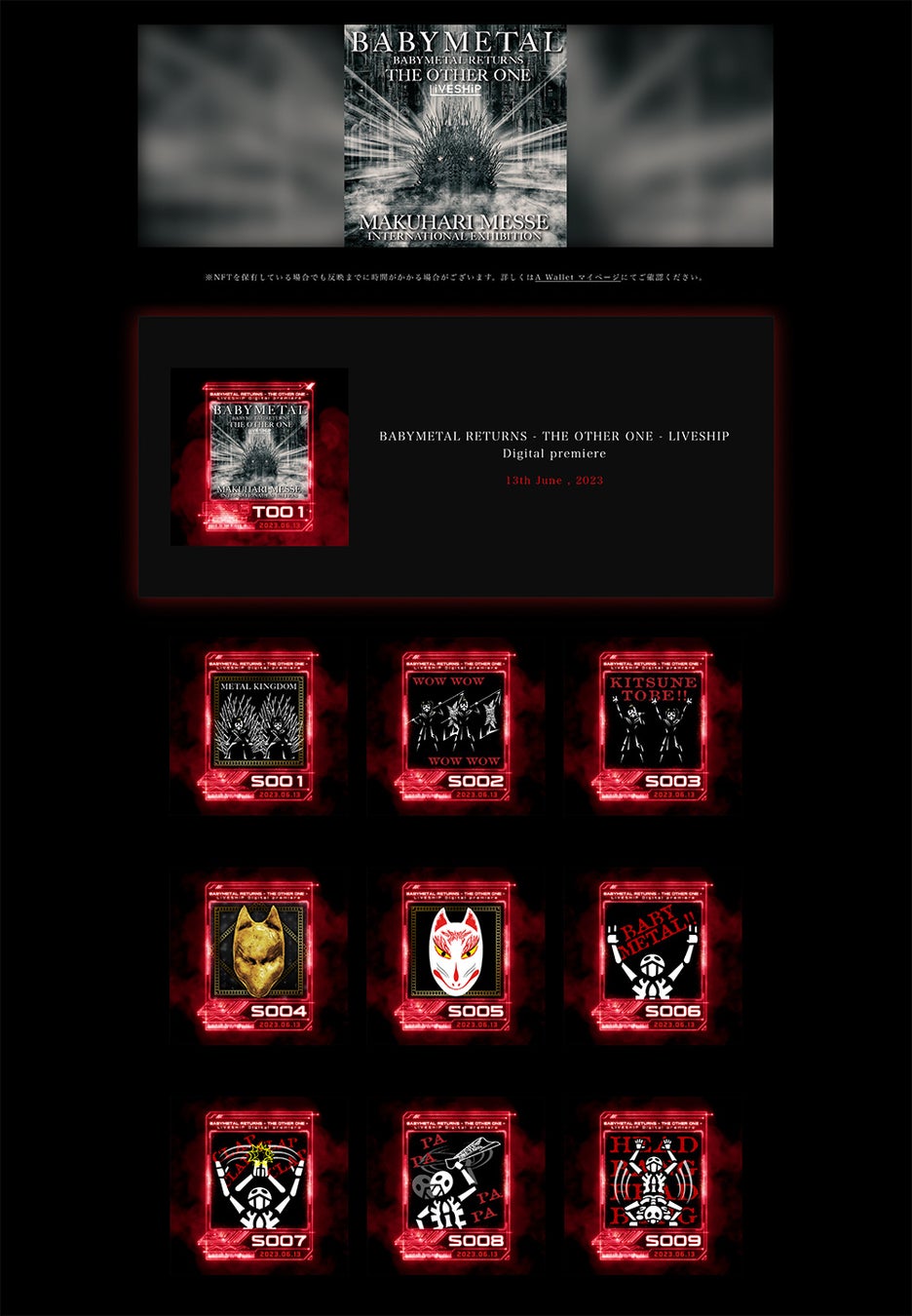 今回のNFTは、株式会社アミューズの運営する、配信プラットフォーム「LIVESHIP」において、2023年6月13日(火)・18日(日)に配信された「BABYMETAL RETURNS - THE OTHER ONE – LIVESHIP」の「THE ONE」限定特典として付与されます。