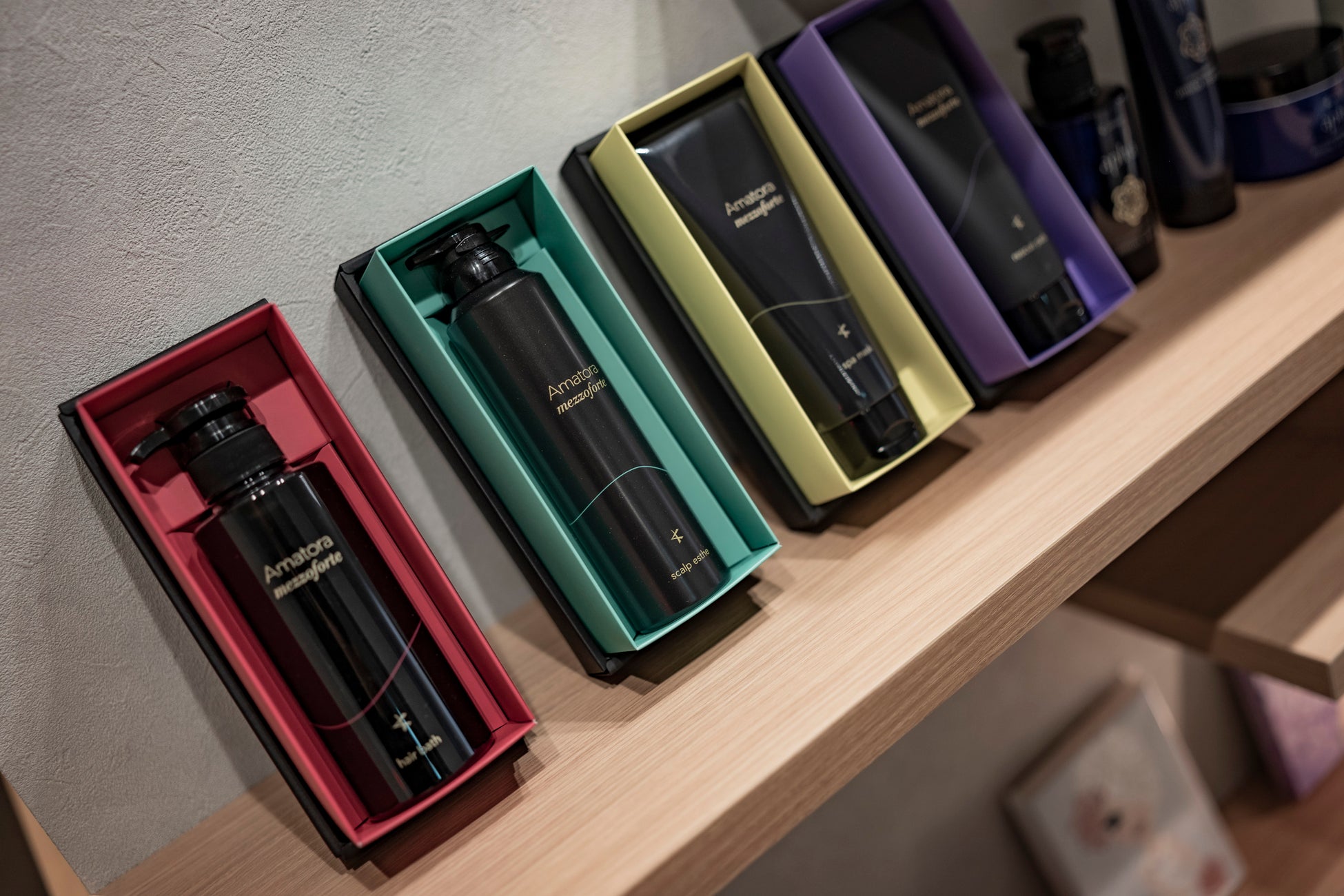 2022年12月オープン。日本人の美しい黒髪を表す「濡烏/ヌレガラス(青みを帯びた黒)」をキーカラーにスタイリッシュなアートが並ぶ空間は、ヘッドスパの技術に特化し、こだわりのヘアケアブランドAmatora mezzoforte(アマトラ メゾフォルテ)がそれぞれの髪の持つ美しさ強さを引き出す、人にも髪にも優しいビューティーサロン。