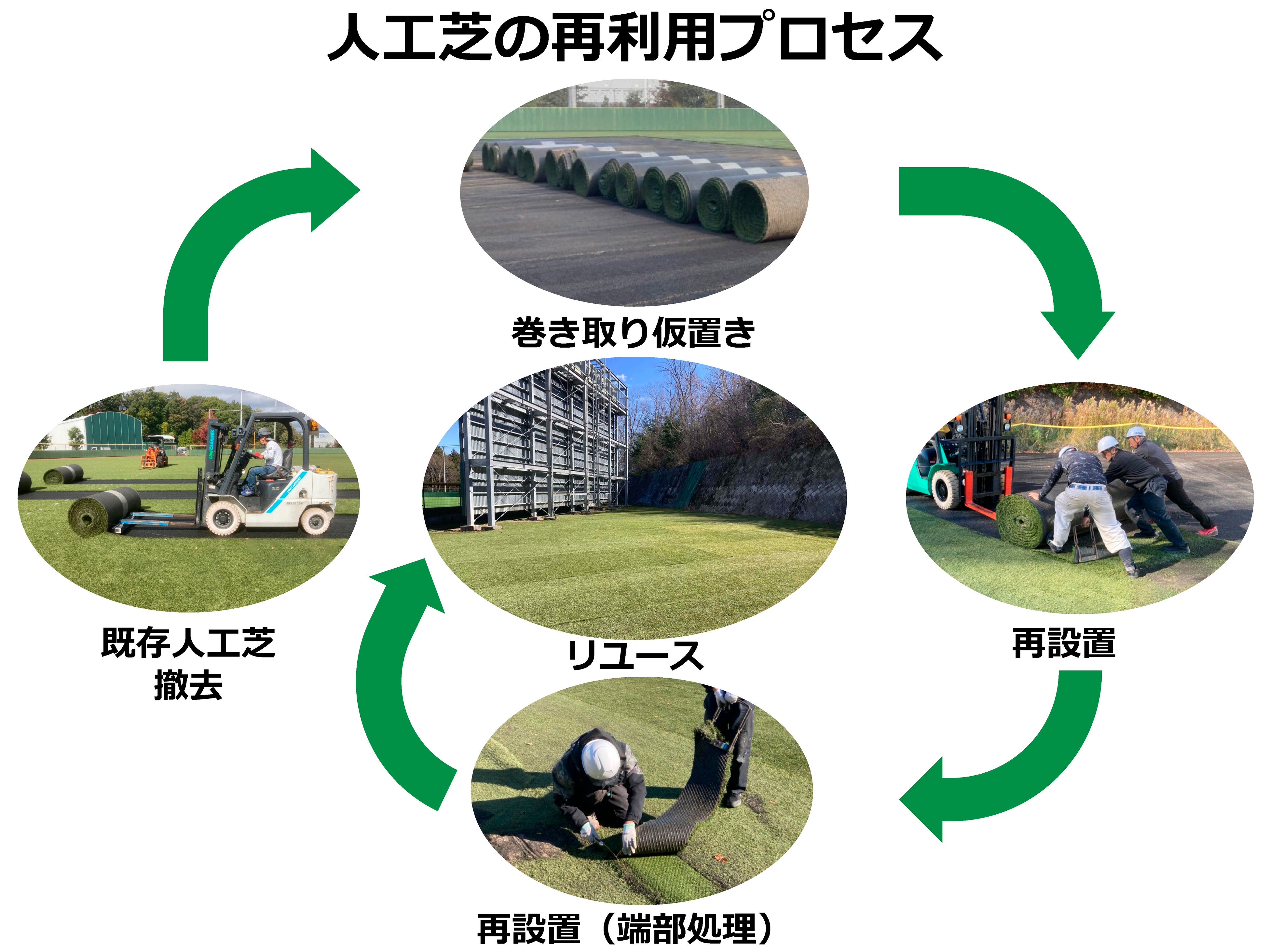 “人工芝の再利用“(※1)でゼロエミッションに貢献(※2)