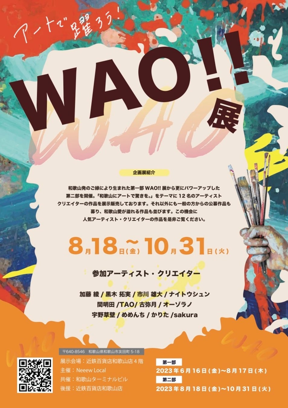 和歌山出身のアーティストを中心に、思わず “WAO!” もしくは “wow” と心が躍るような作品を展示します。