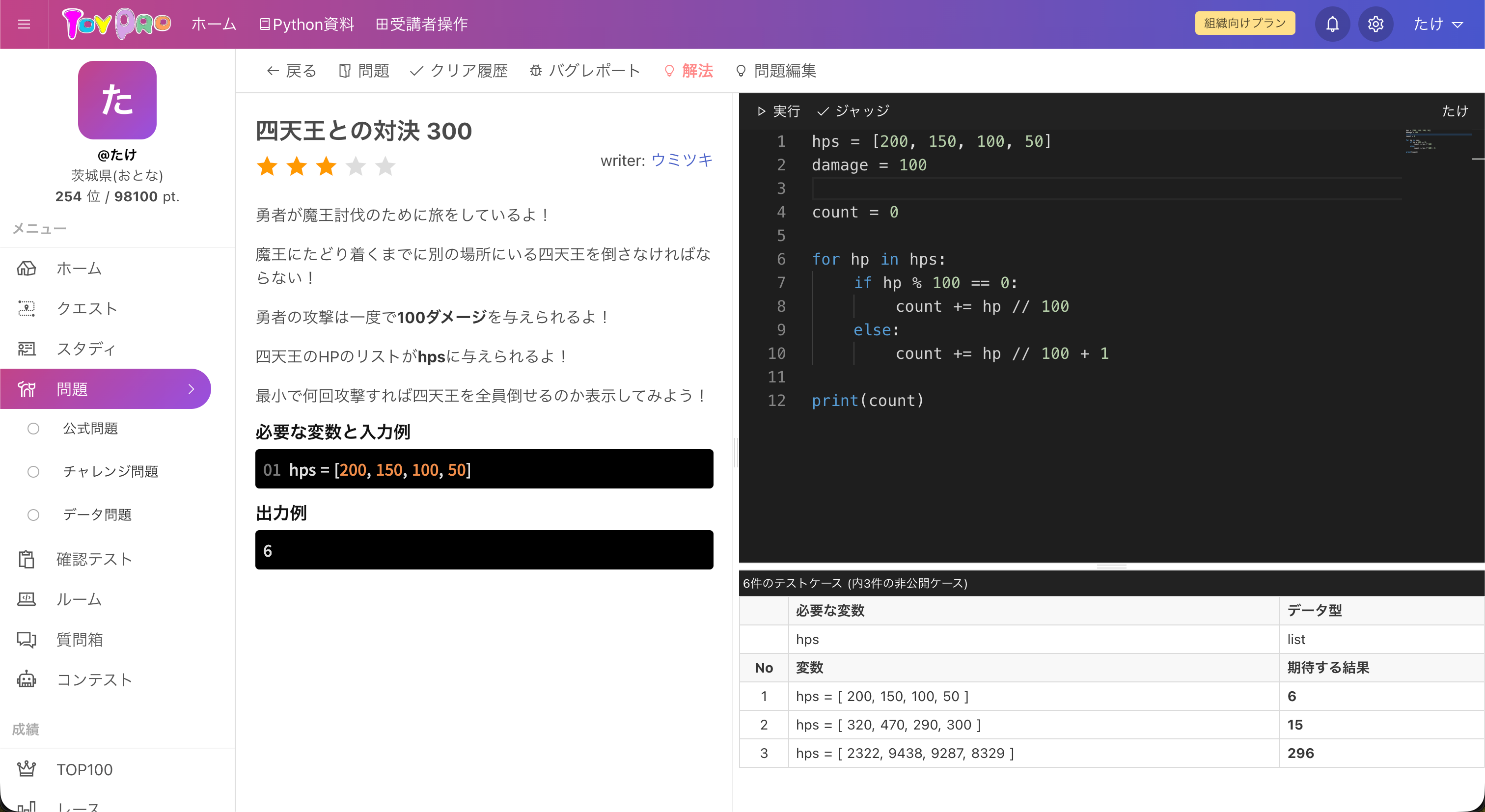 本戦:アルゴリズム理解が試される10問構成。最終問題には「二分探索」を扱う高難度問題も用意し、上級者も満足できる内容です。