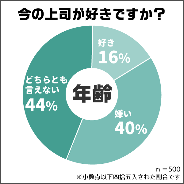 次に「今の上司が好きですか?」と尋ねたところ、「嫌い」と回答した方は40%でした。