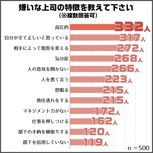 今回は会社勤めをしている男女500人に対して、上司に関するアンケート調査を実施しました。ぜひ現場の生の声を聞いてみましょう。