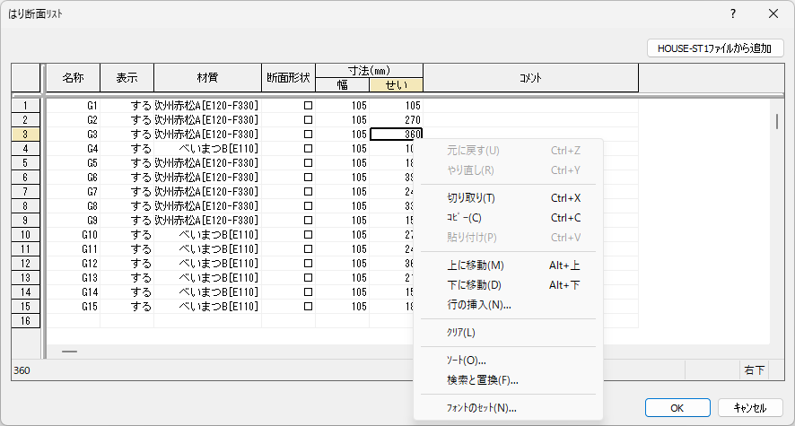 断面リストを定義して配置:編集機能の向上、表入力に対応