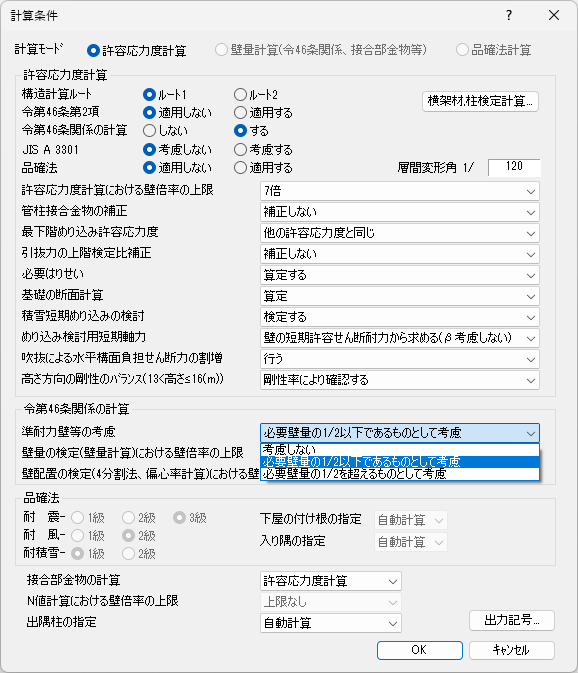 許容応力度計算時の壁量計算:許容応力度計算を行った場合、壁量計算結果を省略可能
