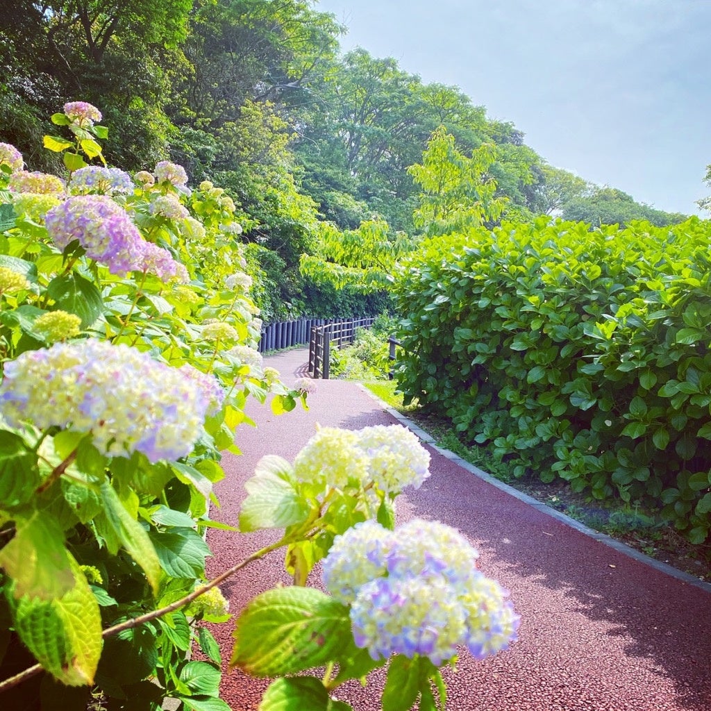 横須賀美術館(横須賀市鴨居4-1)では、例年5月下旬から観音崎公園名物のアジサイが園路一面に色づき、色とりどりのアジサイやガクアジサイをご覧になれます。