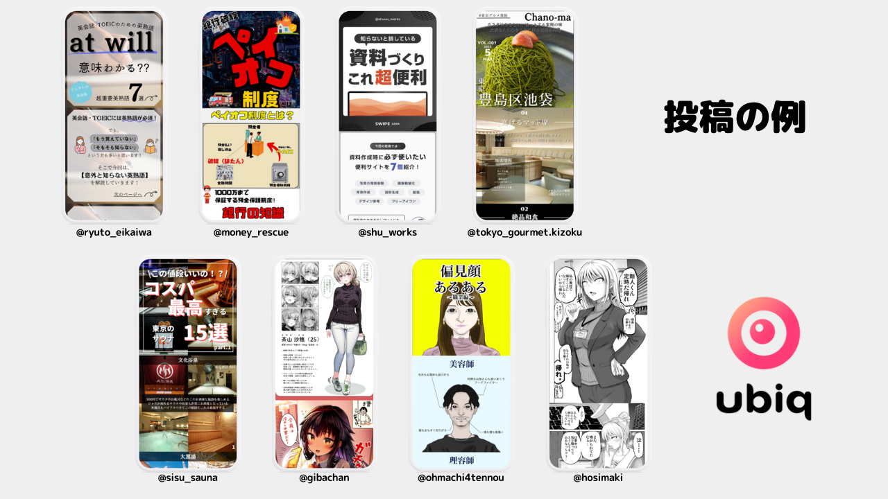 Ubiq公認クリエイターの皆様を中心に、金融情報、ファッション、豆知識からマンガまで、幅広いジャンルの15,000を超える記事がUbiqに寄せられています。