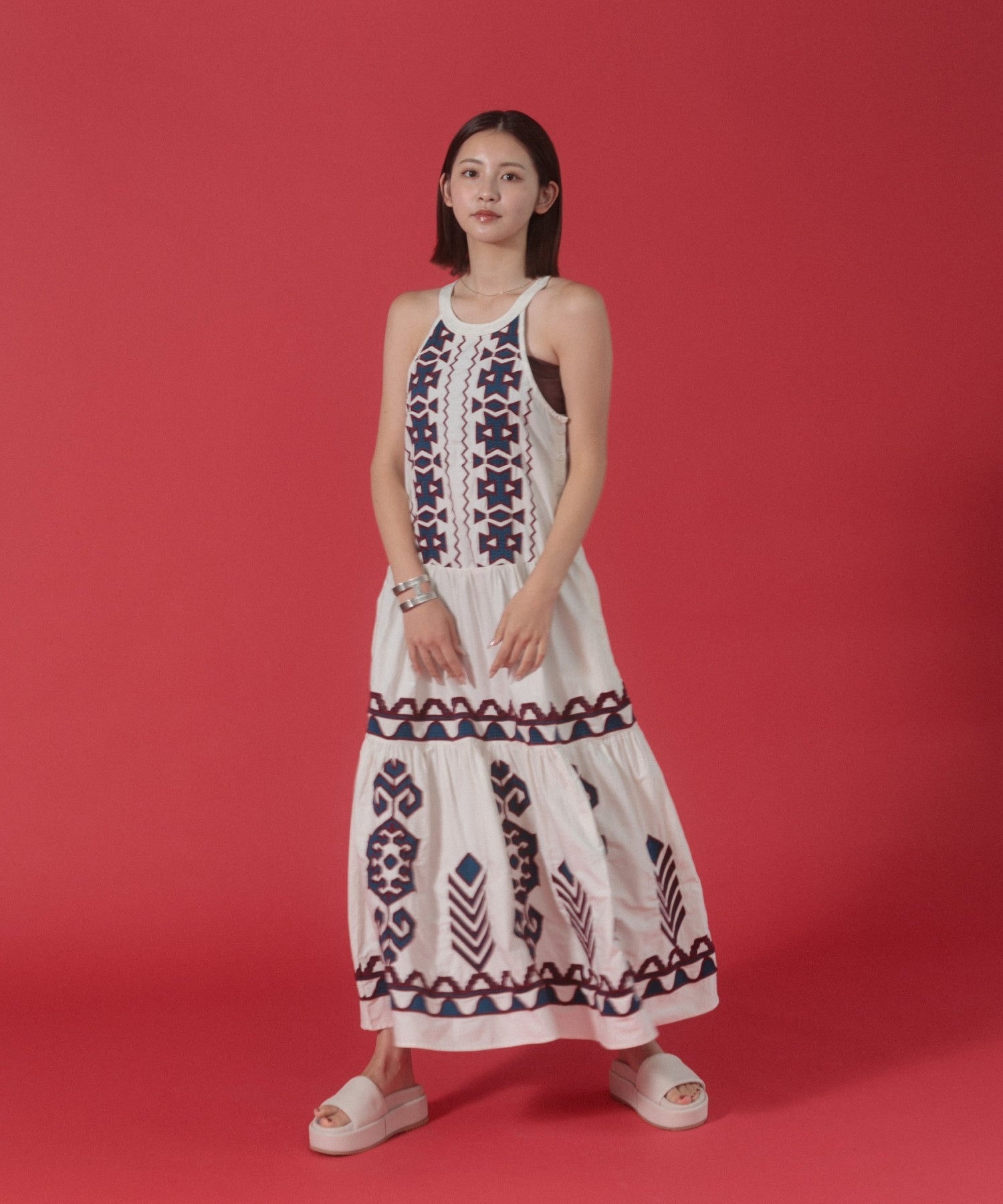 鮮やかでポップなカラー、精緻な刺繍、繊細なレースなど、 伝統的な技術を現代的に解釈したデザインが特徴です。 洋服とおそろいのバックを展開し、トータルコーディネートを提案することで、ファッションを通じた物語を創造します。