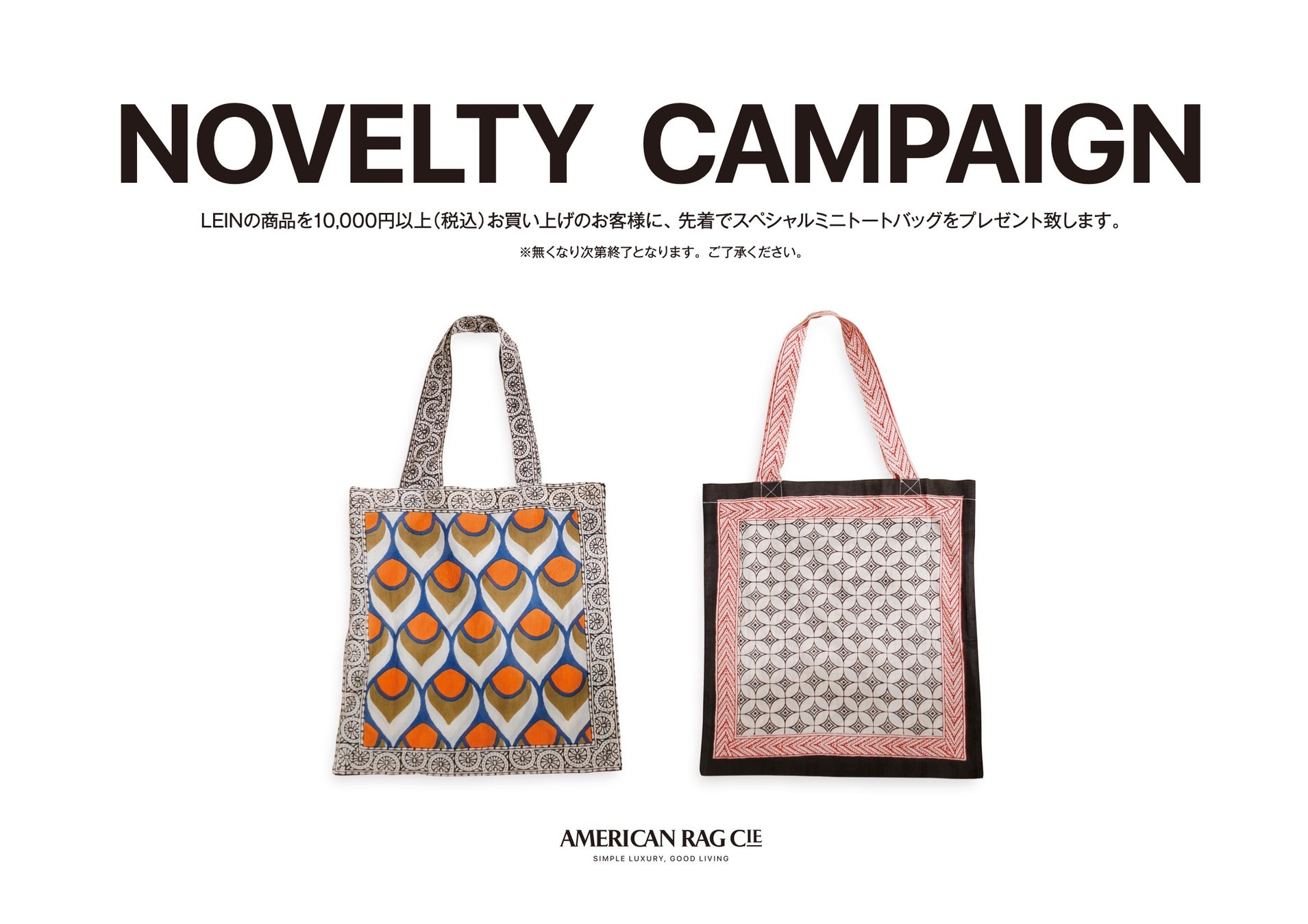 LEINを10,000円(税込)以上をお買い上げのお客様に、先着でスペシャルミニトートバッグをプレゼント