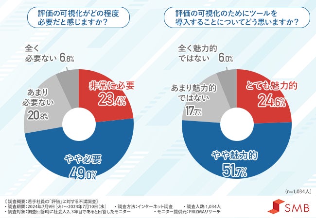 そこで、「評価の可視化のためにツールを導入することについてどう思いますか?」と質問したところ、7割以上の方が『とても魅力的(24.6%)』『やや魅力的(51.7%)』と回答しました。