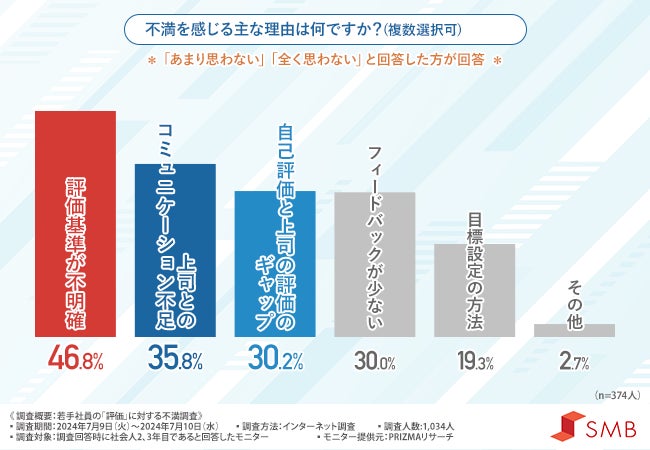 そこで今回、株式会社SMB(https://www.smb-inc.co.jp/)は、社会人2、3年目の方を対象に、若手社員の「評価」に対する不満調査を実施しました。