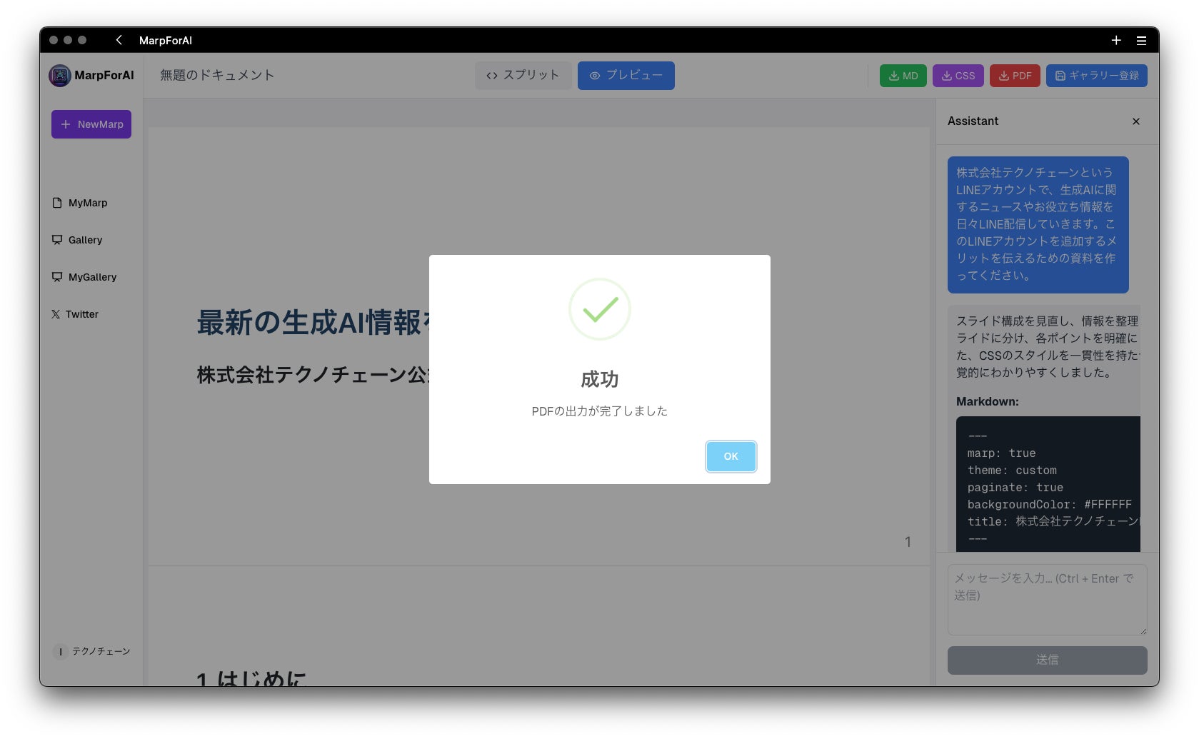 2. PDFでダウンロード可能: 作成した資料はワンクリックでPDFとして保存。