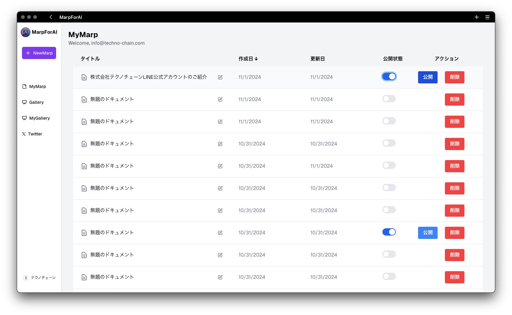 株式会社テクノチェーンは、迅速なプロトタイプ開発を通じて、企業のアイデアをスピーディに形にし、ビジネスのスピードとクオリティを向上させます。これにより、中小企業の革新的な取り組みを支援し、競争力のある市場でのポジション確立をサポートします。ぜひ、MarpForAIで爆速開発の可能性を体験してください。