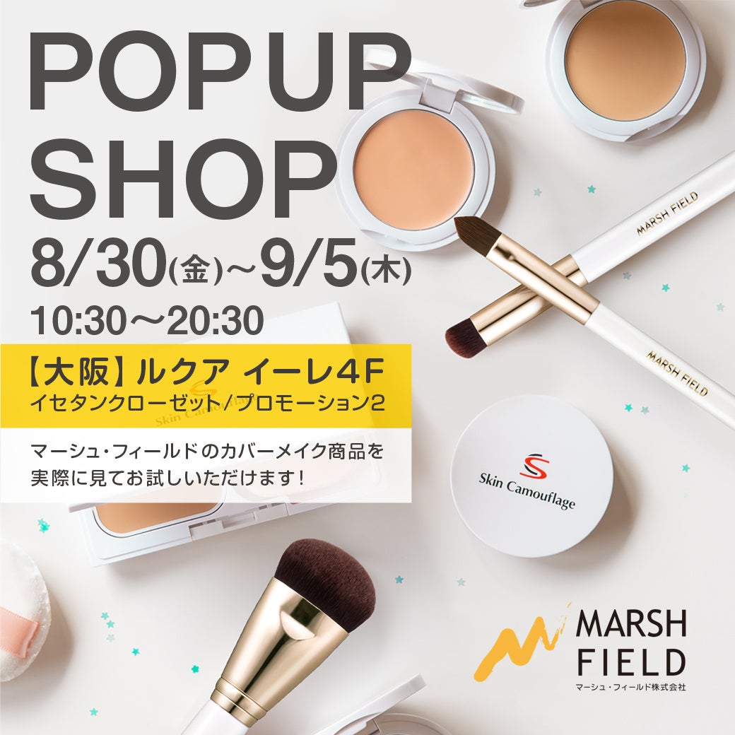 肌の色悩みをカバーするベースメイク用化粧品「マーシュ・フィールド」が、ルクア イーレにて2024年8月30日(金)から9月5日(木)までの期間限定でPOPUPショップをオープンいたします。「マーシュ・フィールド」はオンラインのみで販売しておりますが、このたび10回目となるPOPUPショップの開催が決定いたしました。
