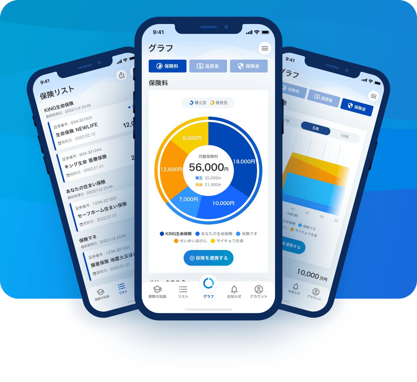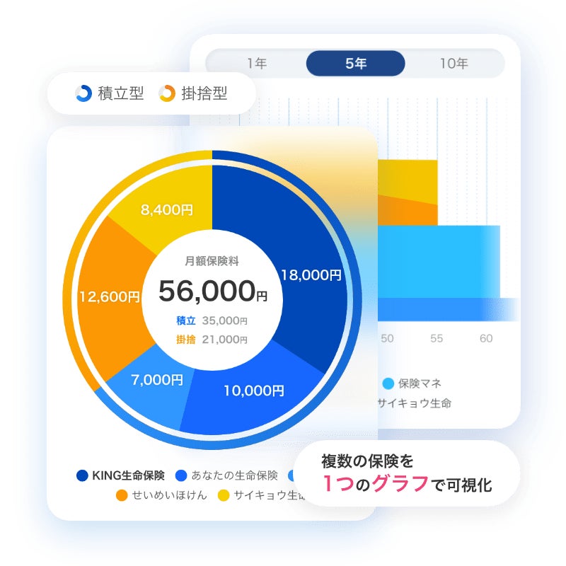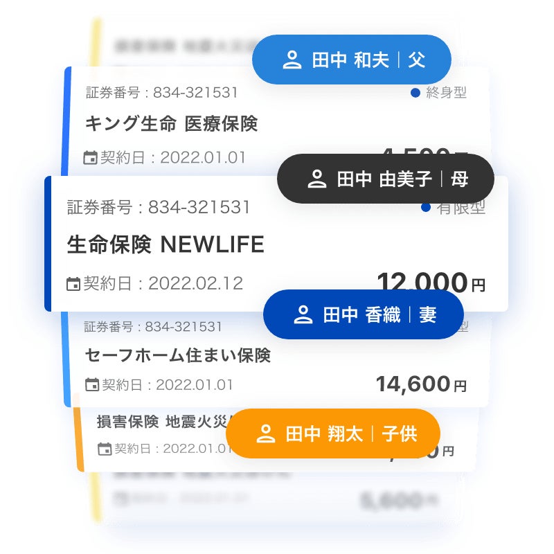 保険管理アプリ『保険マネージャー』は、複数の保険契約をまとめて管理し、契約内容の把握や最適化をサポートします。詳細情報をリアルタイムに可視化することができ、家族間での共有も可能です。