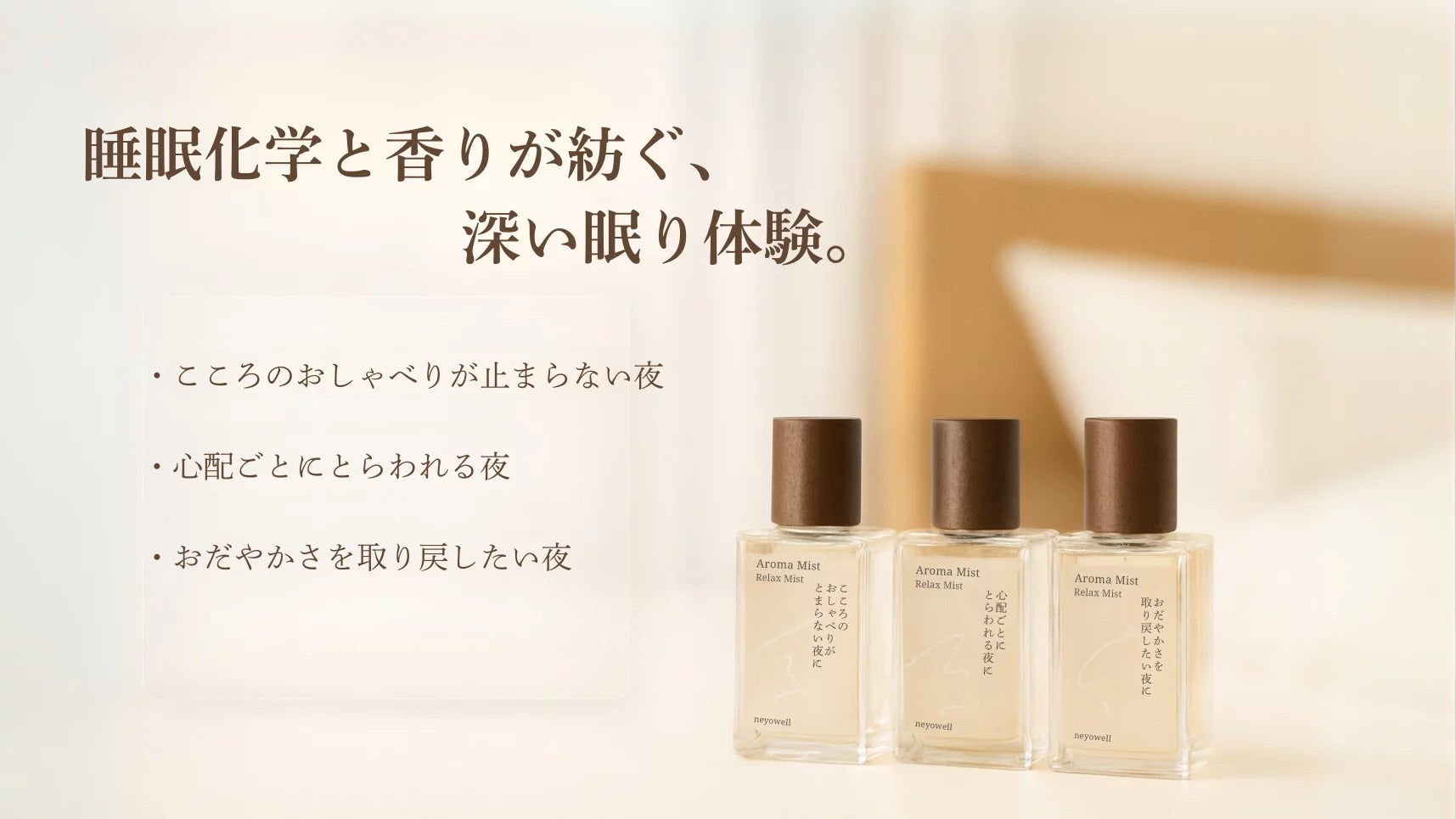 NeyoWellは、こうした声に応えるべく、香りで気分を切り替える「アイマスク用ミスト」と、光を遮光し、温感で環境を整える「光電子®コンディショニングアイマスク」を組み合わせた新しい習慣を提案。心と環境の両面から“夜のスイッチ”をオフに導く仕組みを形にしました。