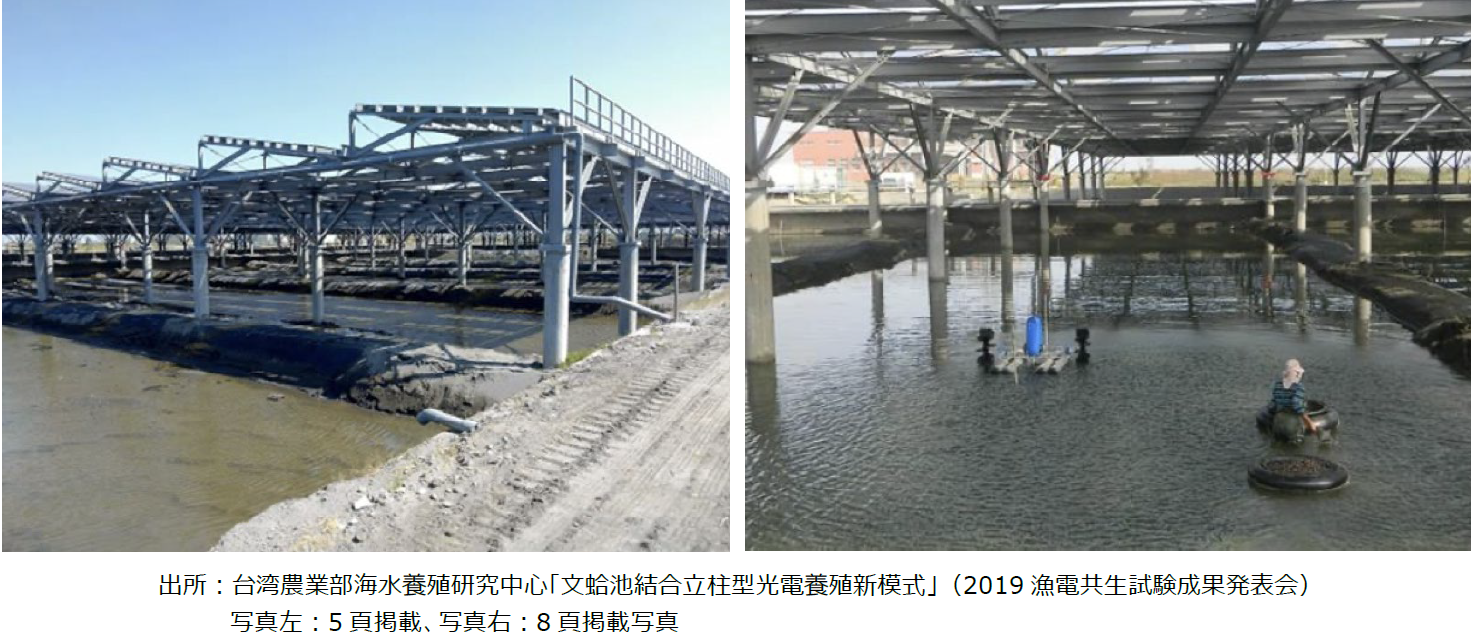 台湾は製造業が盛んであるため、一人当たりの電気使用量は日本の1.6倍超と多く、また火力発電への依存度が高い市場です。2050年までのカーボンニュートラル実現に向け、台湾政府は、太陽光発電容量の導入目標を2025年までに20GW、2030年までに30GW、2050年までに40GW~80GWと設定しています。中でも、エビやハマグリ等の養殖池の上に太陽光パネルを設置し、漁業と発電事業の共生を図る「漁電共生型」を新たな太陽光発電の手法と捉え、2025年までに同手法で4GWの導入を目指すことを政策としています。