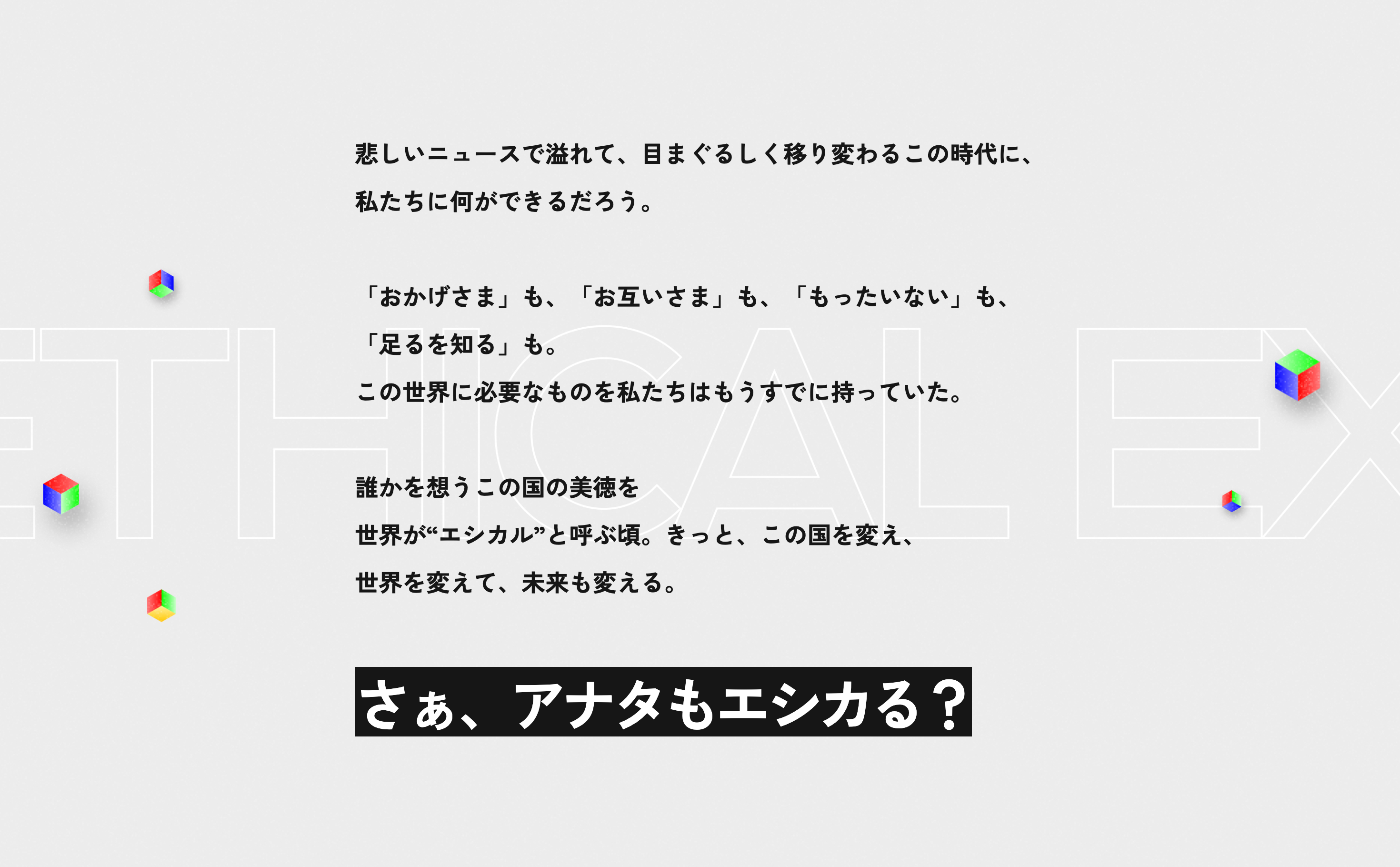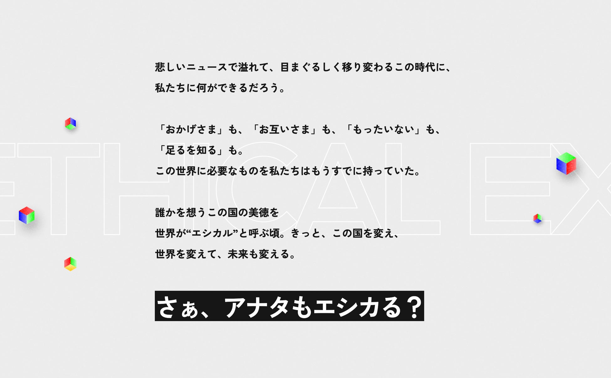 若々しくポップなデザインながらも、主張すぎないミニマルなアニメーションやモノクロベースの背景で、エシカルなコンセプトを表現
