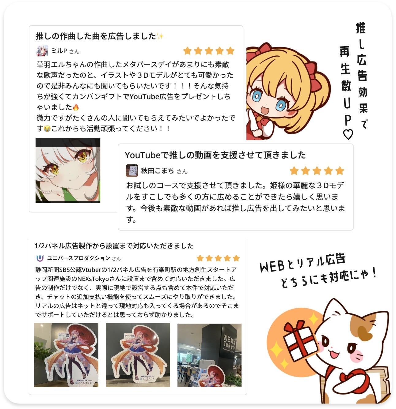 昨年のβローンチから計30件以上の応援広告を手掛けたカンバンギフトがリニューアルして正式ローンチ!あなたの推し広告プロジェクトを募集中!