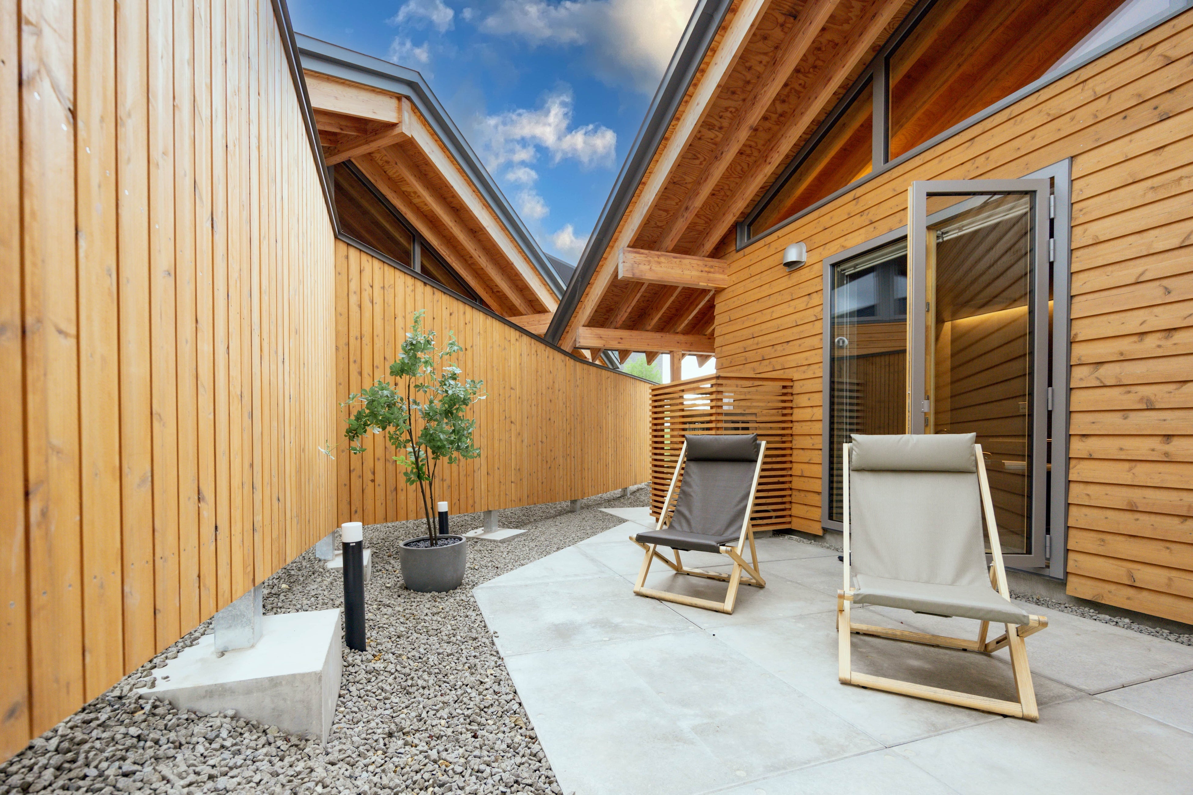 全棟にジェットバス、プライベートサウナ、水風呂、外気浴スペース、旭川家具特注のととのい椅子を完備しております。