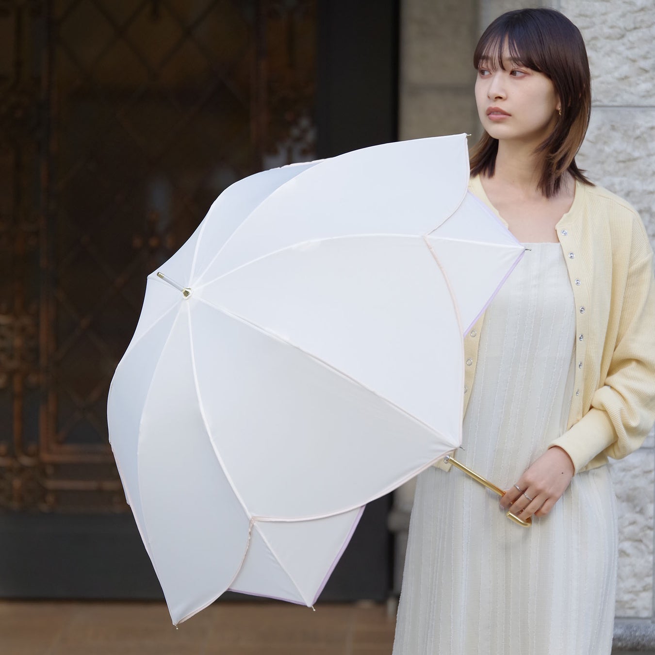 ニフティカラーズの「フラワーパイピング傘」は、独自のカッティングラインなので他とデザインがかぶらないのが特徴。花のような柔らかいカラーリングと2色使いのパイピングがおしゃれ。