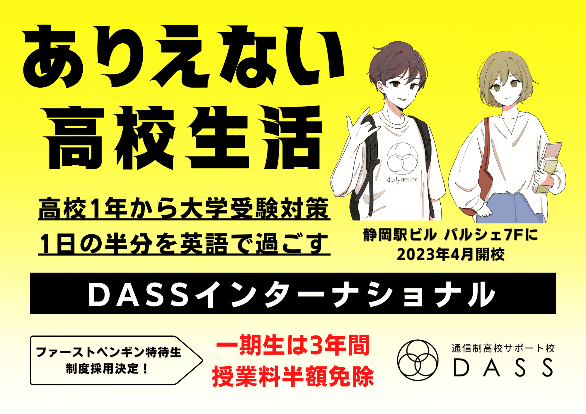 2023年4月、静岡駅ビルパルシェに、高校生向けのインターナショナルスクールDASSを開校する。