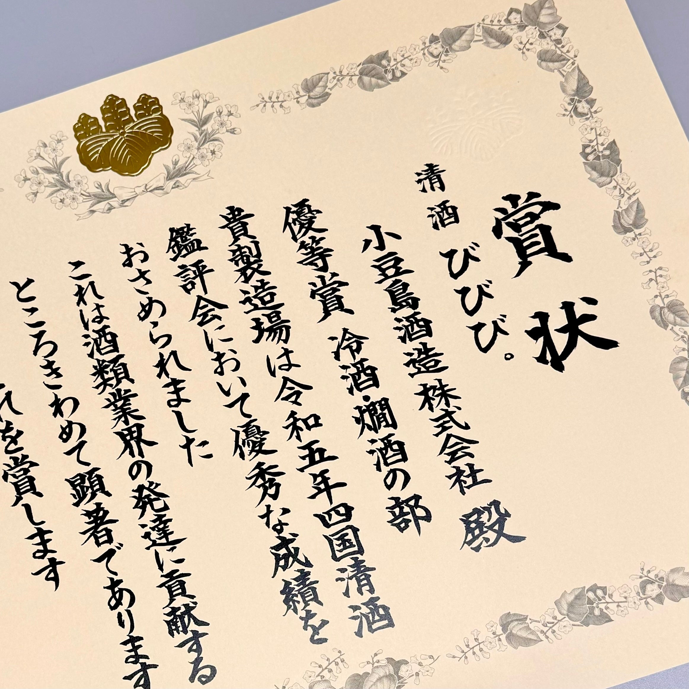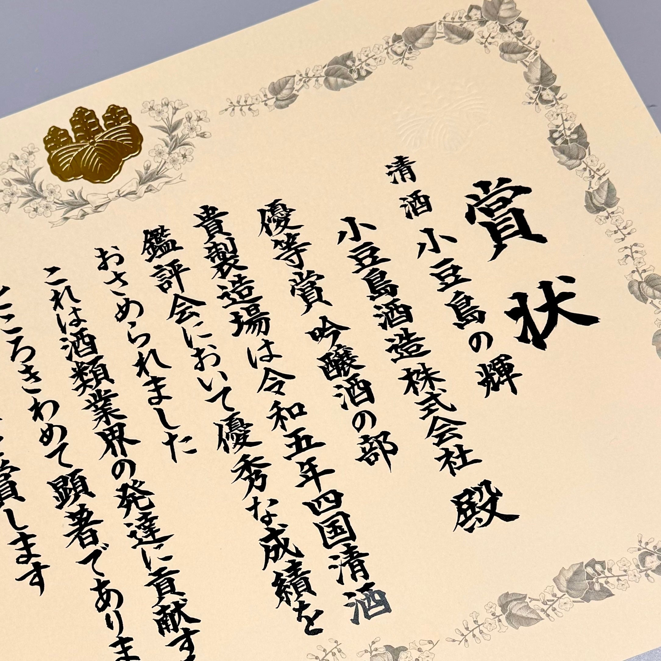 令和5年11月7日に令和5年令和5年四国清酒鑑評会の発表があり、小豆島酒造㈱の「小豆島の輝 大吟醸」が、吟醸の部で、「びびび。」が、冷酒・燗酒の部で、それぞれ優等賞を受賞致しました。
