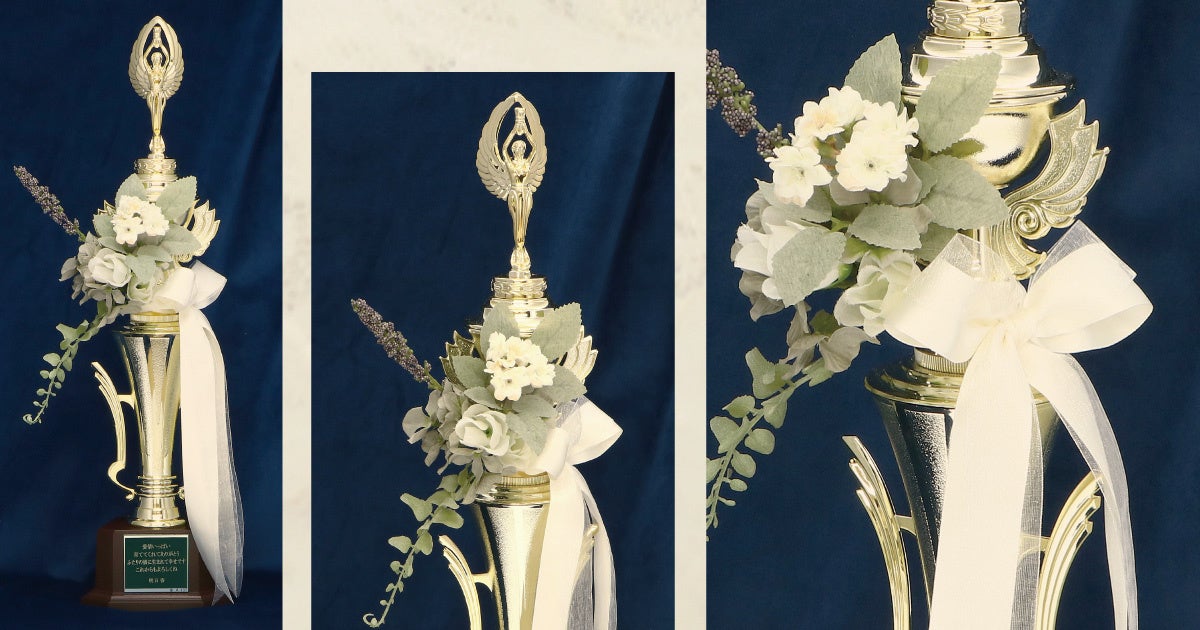 これまでのトロフィーやカップは紅白リボンが定番であり、いわゆる「王道」とされてきました。