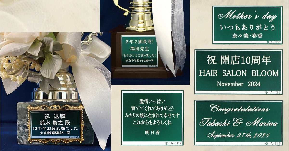 「優勝」「1位」「グランプリ」など栄誉を称えるだけでなく、「ありがとう」や「お疲れ様でした」といったメッセージを刻印して特別な贈り物としても使っていただけます。
