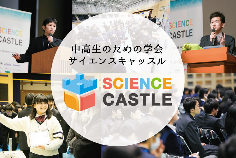 第3弾である中学生・高校生の研究者を対象とした学会「サイエンスキャッスル」は、民間企業、大学、研究者が中高生の研究を応援する仕組みを作り、「未来を担う研究者の登竜門」として、これまでにのべ3000件を超える研究発表が行われ、次世代研究者との対話による未来に向けた提言や活動を企画開発する場を提供します