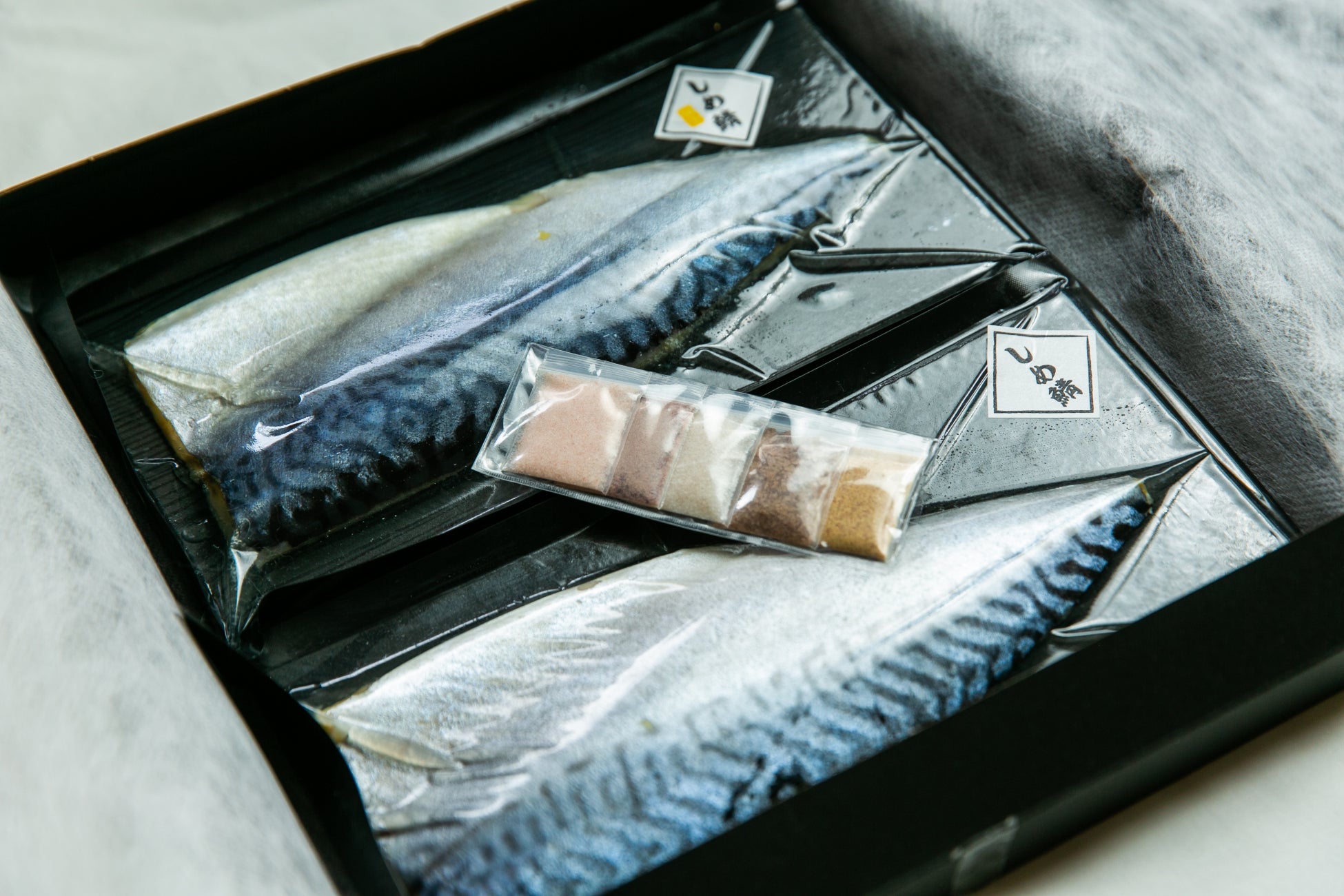 『プレミアム鯖ギフト くちどけ鯖』は、『くちどけ鯖』とゆず風味の『ゆずくちどけ鯖』が1枚ずつセットになっています。黒の箱に真空パックの鯖がおさめられた高級感のあるパッケージでお送りします。