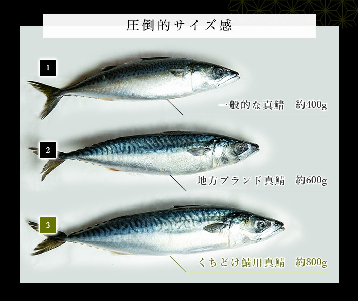 一般的な鯖は400g、地方のブランド鯖は600g以上が通常のサイズです。一方、『くちどけ鯖』には800g以上と、一般的な鯖の倍の重さの鯖が使用されています。大型の鯖は、通常のサイズの鯖に比べて脂の乗りがよいため、濃厚でまろやかな口当たりを楽しめるのです。