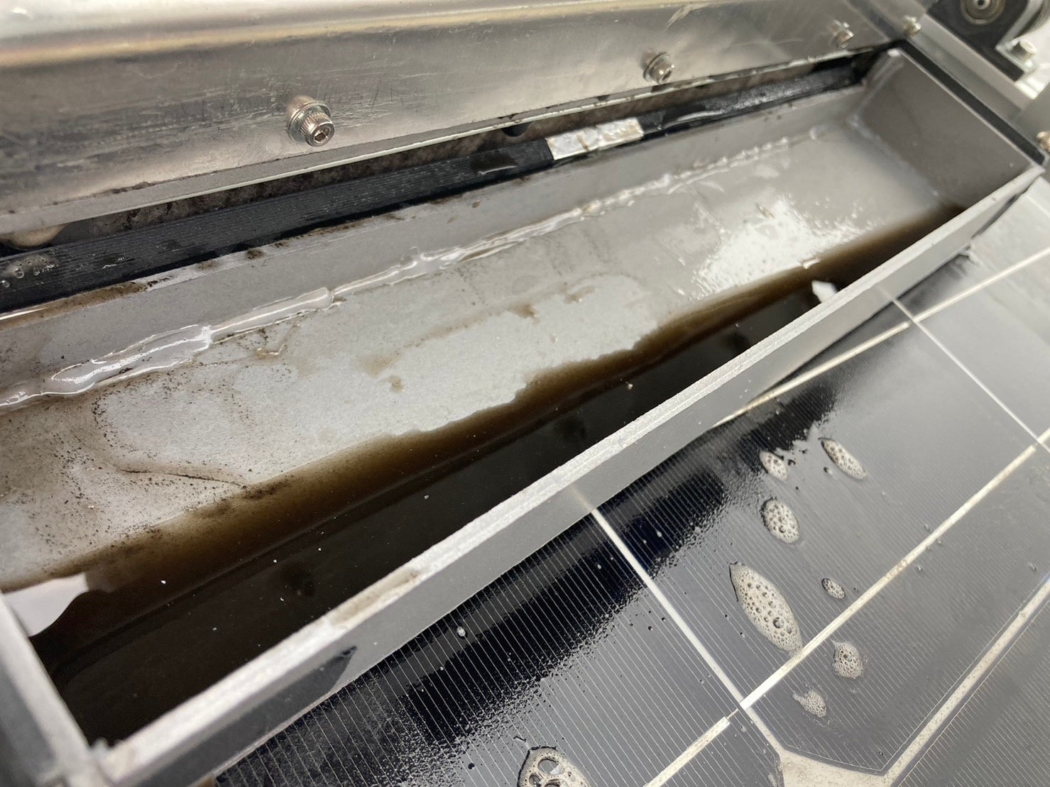 画像のように清掃した面と未清掃の面の違いがはっきりわかります。パネルは汚れていないようでしっかりと汚れている事がわかります。