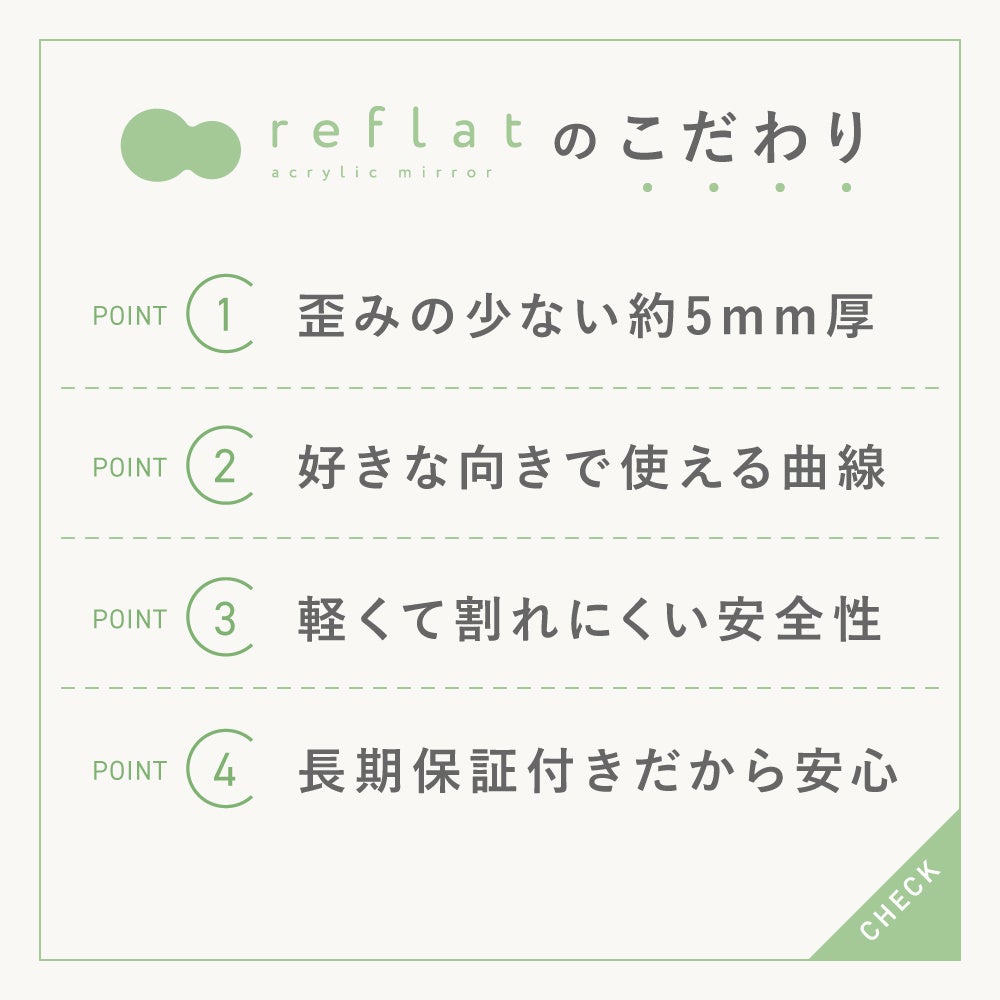 『リフラット』は、これらの技術を取り入れた新しいアクリルミラーなのです。