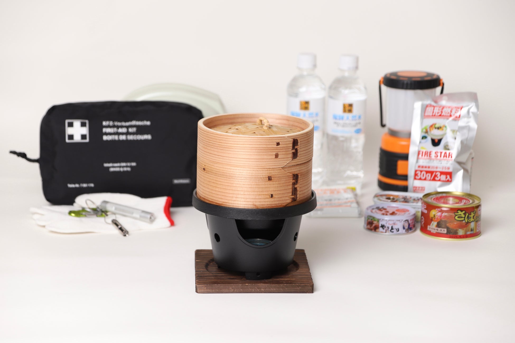 「いろはせいろ」は、固形燃料と水があれば場所を選ばす調理することができるため、ガスや電気が使えない状況下でも炊飯や缶詰などの温めが可能です。
