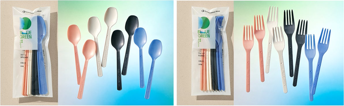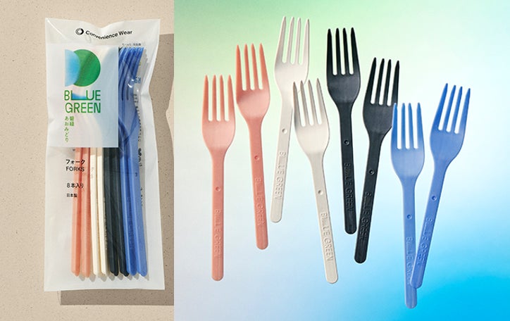 ファミリーマートはプラスチックの使用量削減や環境に配慮した素材への切り替えなどに取り組んでいます。これまでもGreen Planetの環境負荷低減に貢献する点が高く評価され、店頭で配布されるストローやカトラリーでGreen Planetの導入拡大が進んでいます*3。今回の「コンビニエンスウェア ブルーグリーン」プロジェクトでは、ファミリーマートオリジナルの環境に配慮したサステナブル商品として、心地いい色で、くり返し使いたくなるようデザインされた4色のGreen Planetカトラリーの採用が決定されました。なお着色には天然由来の顔料を使用しています。