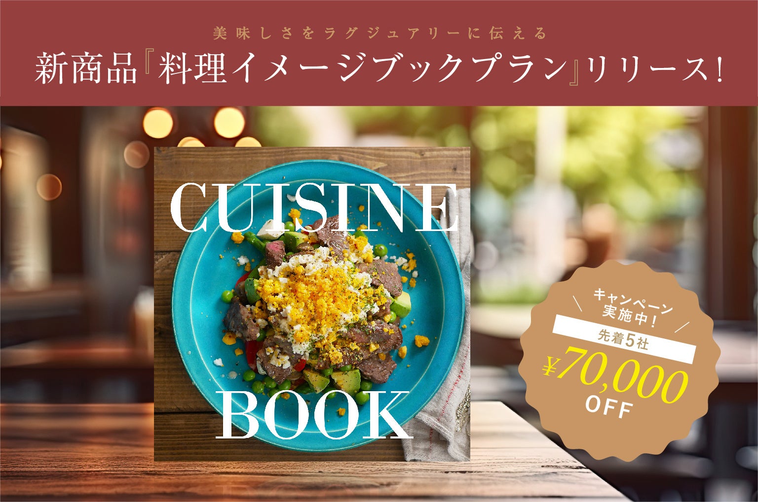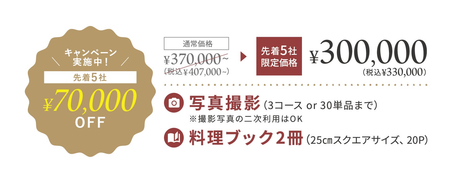 <特典内容> 先着5社限定で「料理イメージブックプラン」料金を7万円引きに