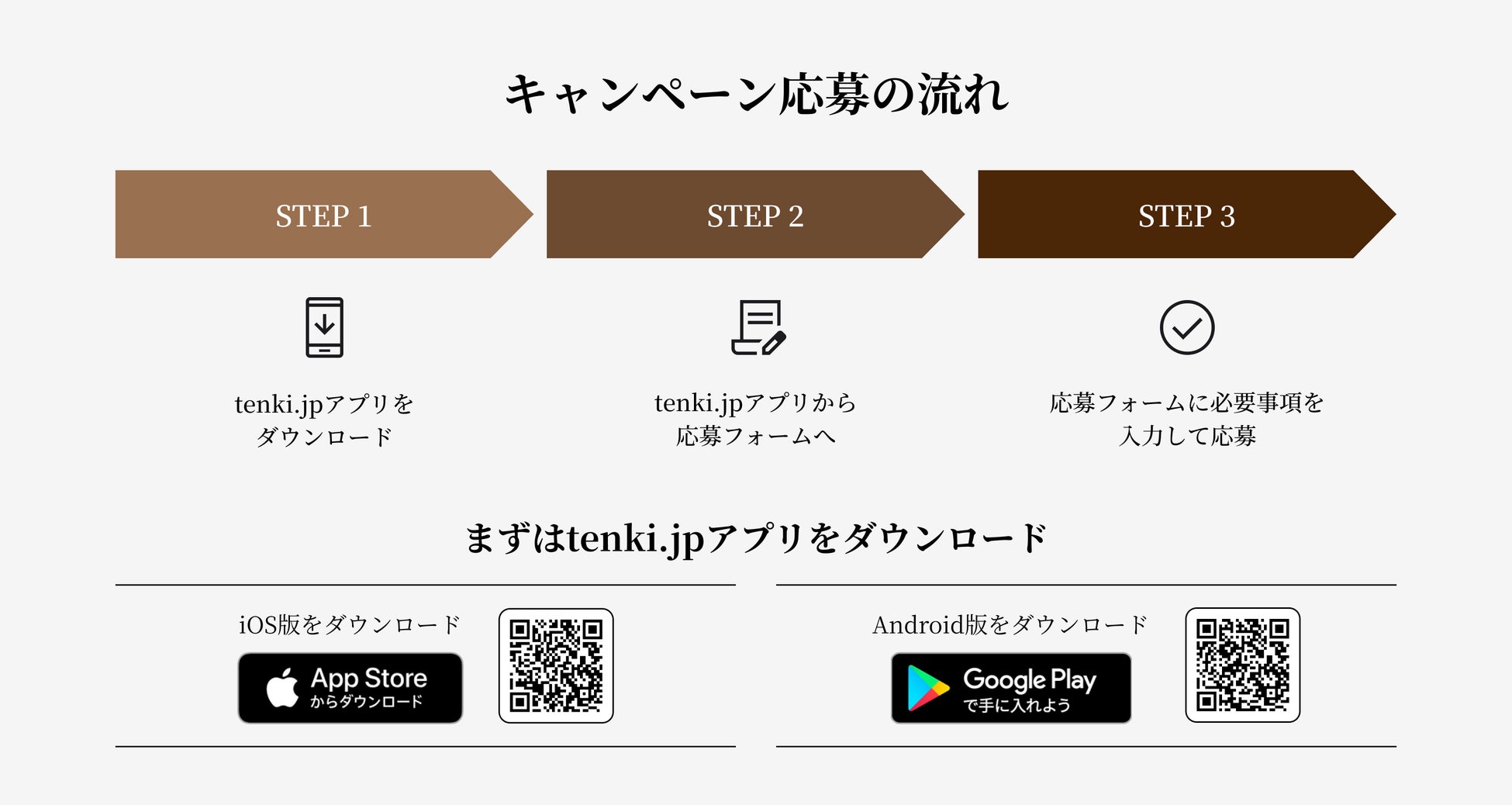 ・応募方法:「tenki.jp」アプリの応募フォームから、必要事項を入力して応募