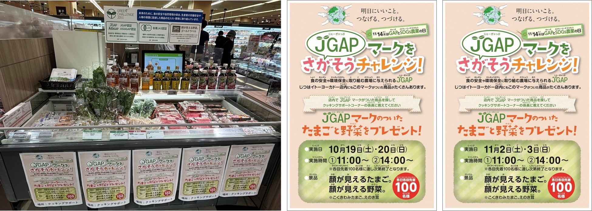 一般財団法人 日本GAP協会は、株式会社セブン&アイ・ホールディングスの賛同を受け、2024年10月19日・20日にイトーヨーカドー木場店、11月2日・3日にイトーヨーカドー国領店にて、持続可能な農業に貢献する取り組みであるJGAP認証を広く知ってもらうための店頭イベントを開催しました。